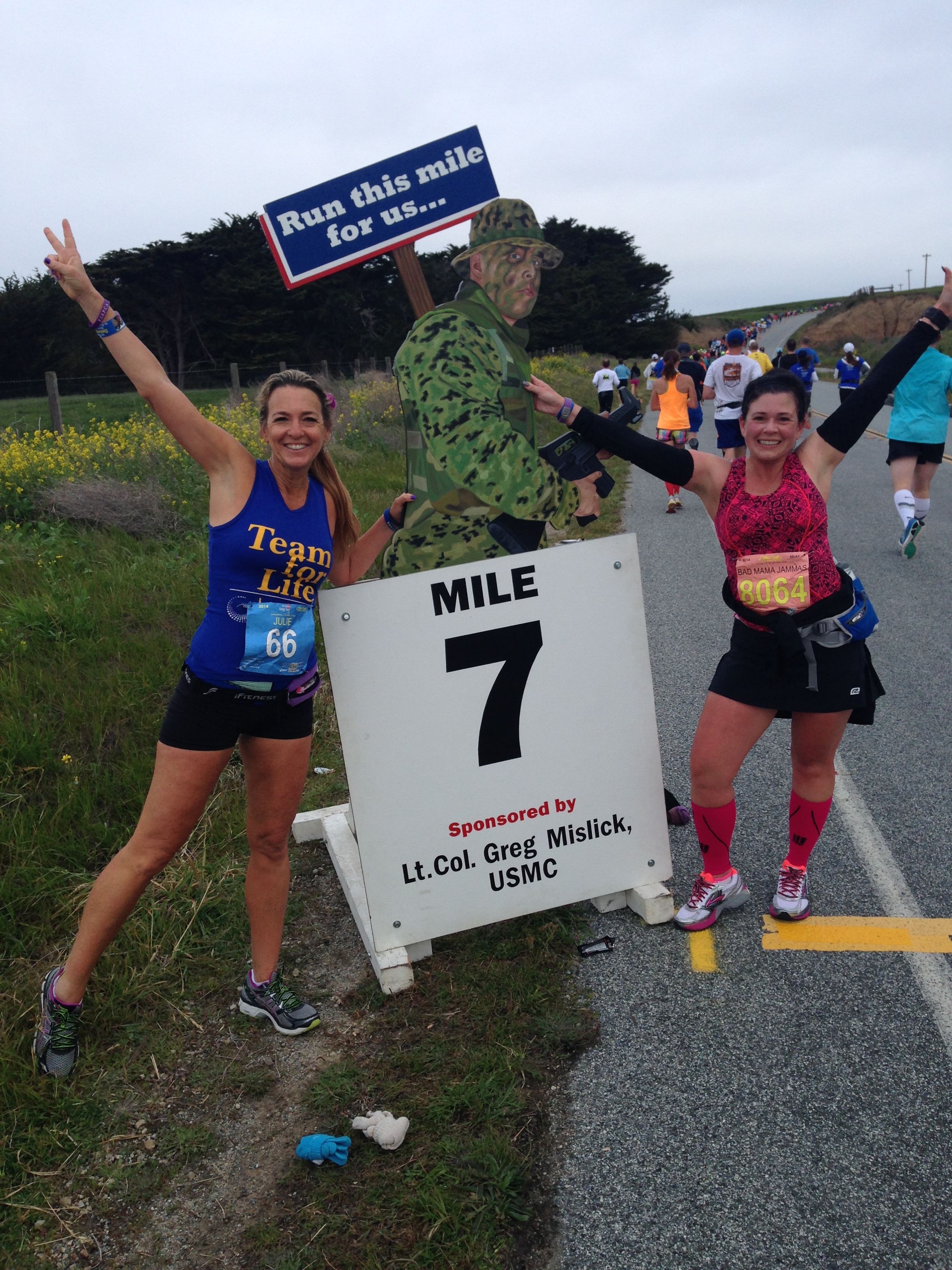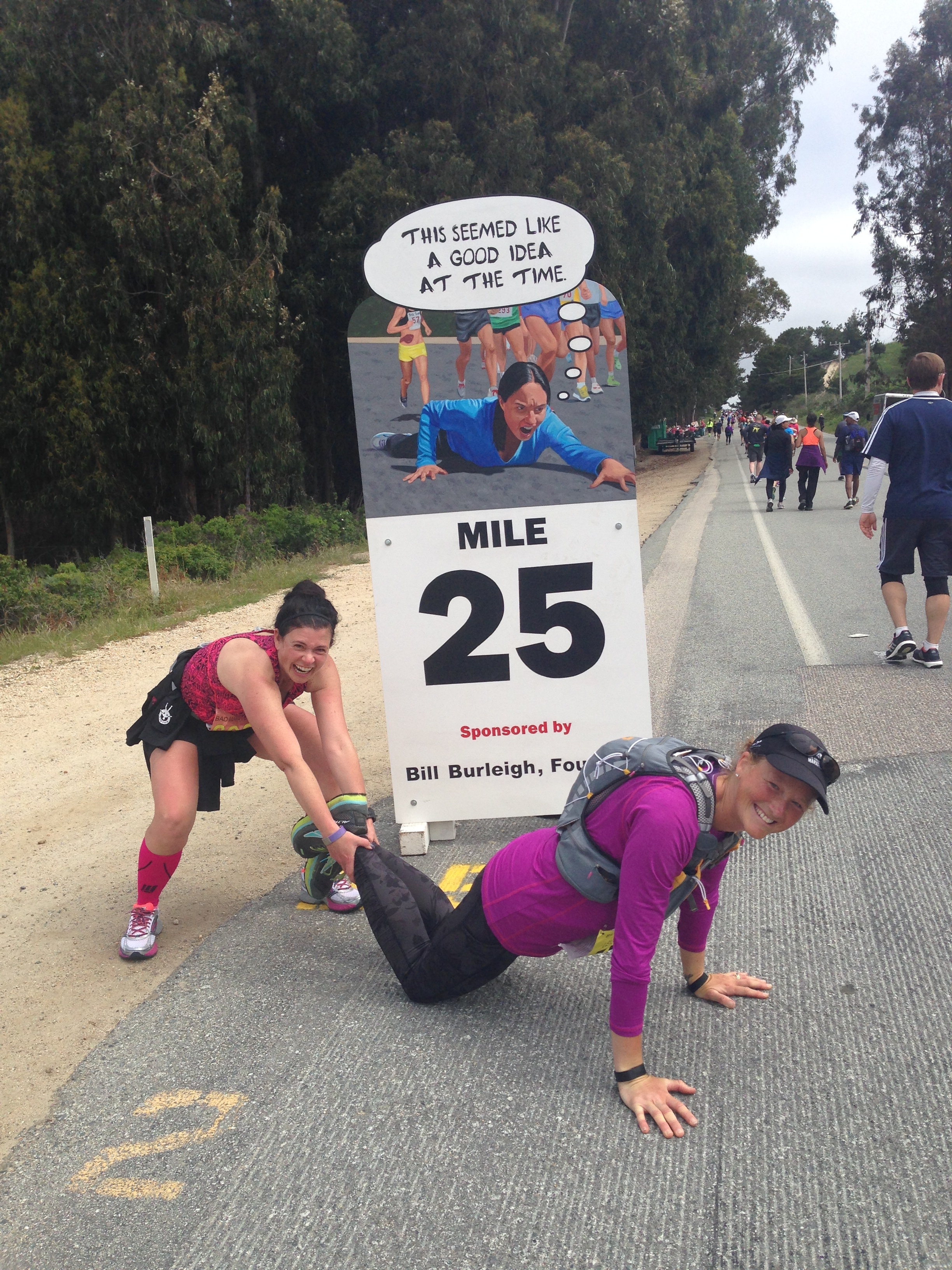 Celebrating Marathon #7 at Mile #7 of Big Sur with Julie, Marathon Goddess!