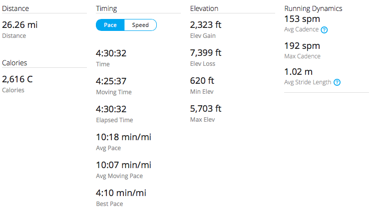 To say that I am very disappointed in my results at Revel is an understatement. I trained very hard on this last training cycle for this race. My paces were where they needed to be for a PR and even if lucky, a BQ. I left that course without even as much as a PR. But, I am proof that regardless of how hard you train and regardless of what your watch says, if the body does not want to work, it won’t. Running Revel sick was not my intention, obviously. But it happened. I rallied and I did not give up. I had no idea that I would be dealing with a 2K+ gain either – that was a game changer. That mountain was a beast and I gave it everything I had. Believe me, I have been through so much more in my life – that mountain did not beat me – I still got off it and I got the earned medal to prove it. I also know that it may not be my race to run again. Does that make me miss out on a possible chance for a PR or a BQ on that course in the future? Maybe. But, I know beyond a doubt that I now know what my body can tolerate and what it can’t on a course. Maybe all is not a loss. Maybe I gained Personal Reflection (my new PR) on that course. Maybe it is true after all, every race you learn something different about yourself.